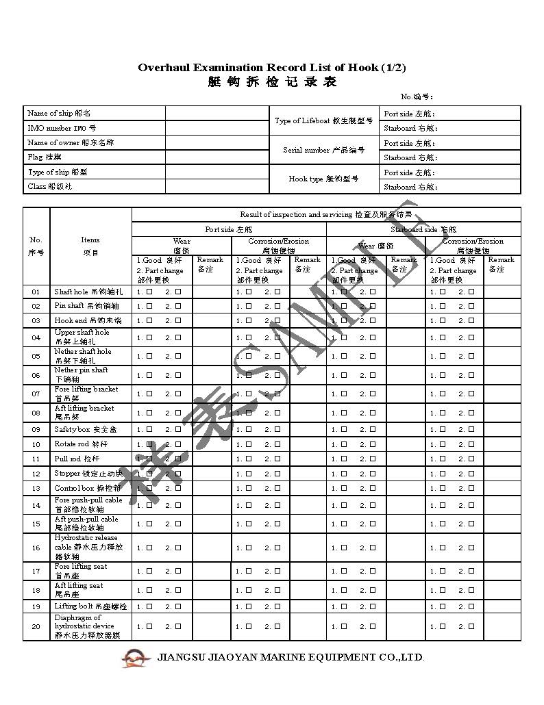 附录3:艇钩拆检记录表